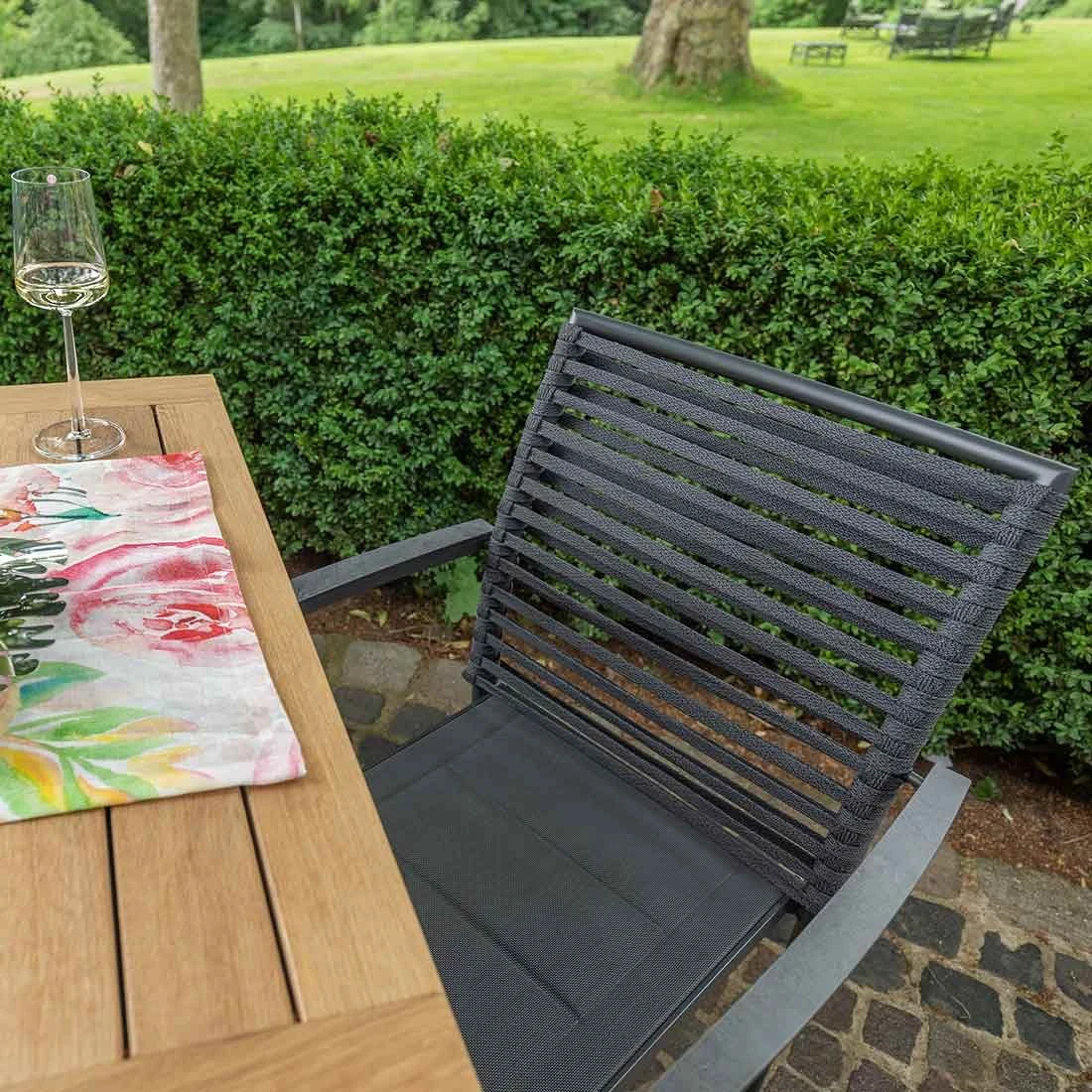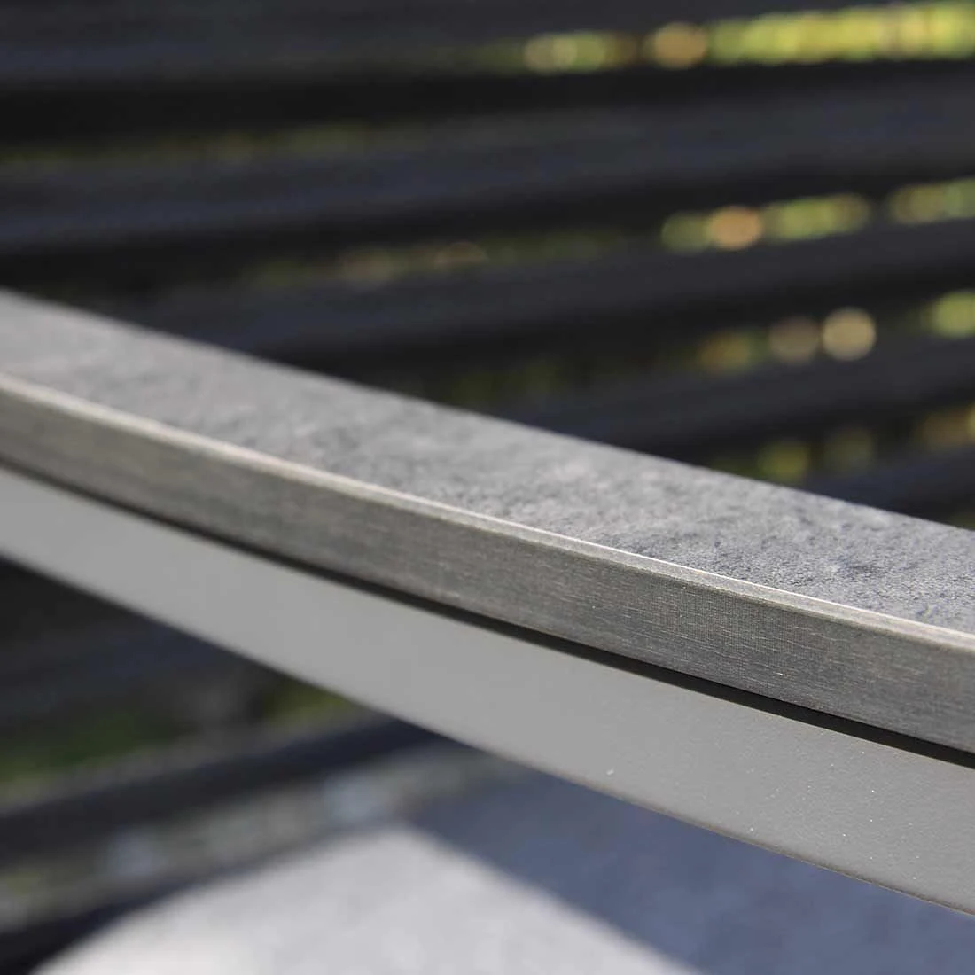 Das Gestell besteht aus pflegeleichtem und wetterfestem Aluminium in der Farbe Anthrazit.