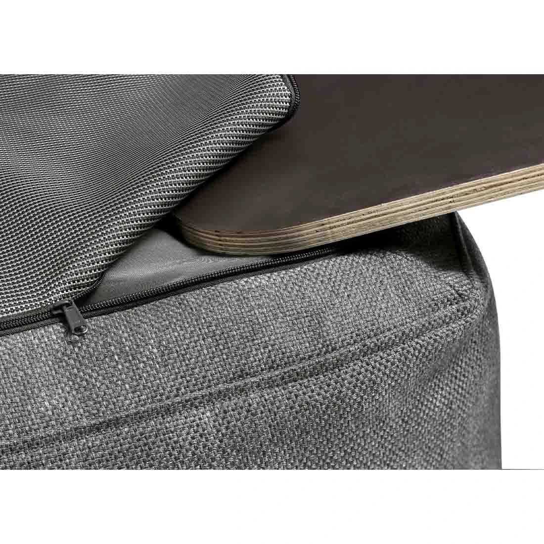 Die Sitz- bzw. Rückenfläche ist aus hochwertiger Kunstfaser gefertigt. Dadurch ist die Außenhülle wasserundurchlässig, sodass Sie die Gartenliege auch bei länger andauernder Feuchtigkeit draußen belassen können.