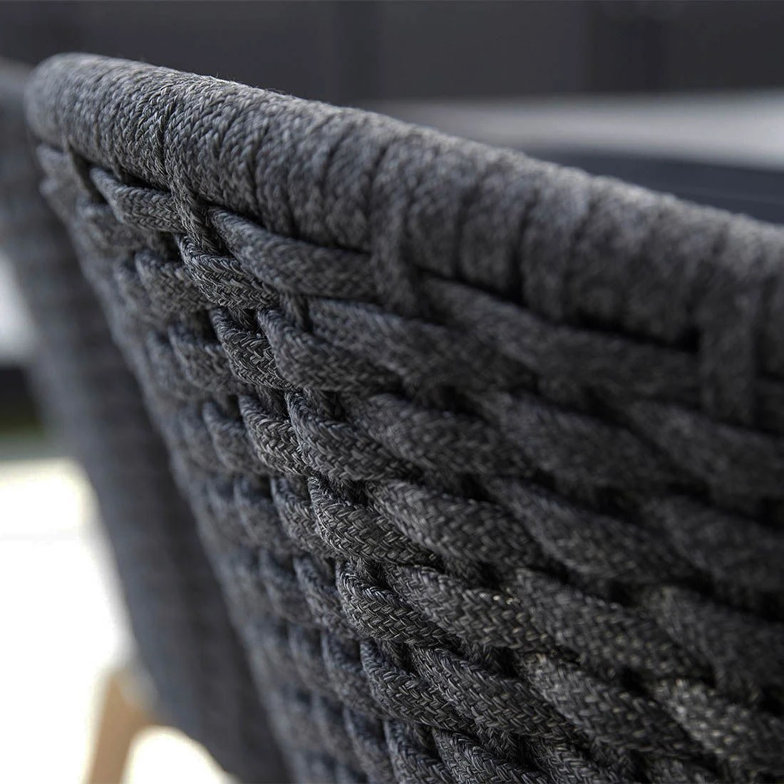 Das Gestell wird aus Teakholz gefertigt und bringt ein natürliches Flair auf Ihre Terrasse. Farblich ist dieses in Natur gehalten. Hochwertiges Rope umgibt das robuste Gestell und verleiht dem Gartensessel damit einen ganz besonderen Look.