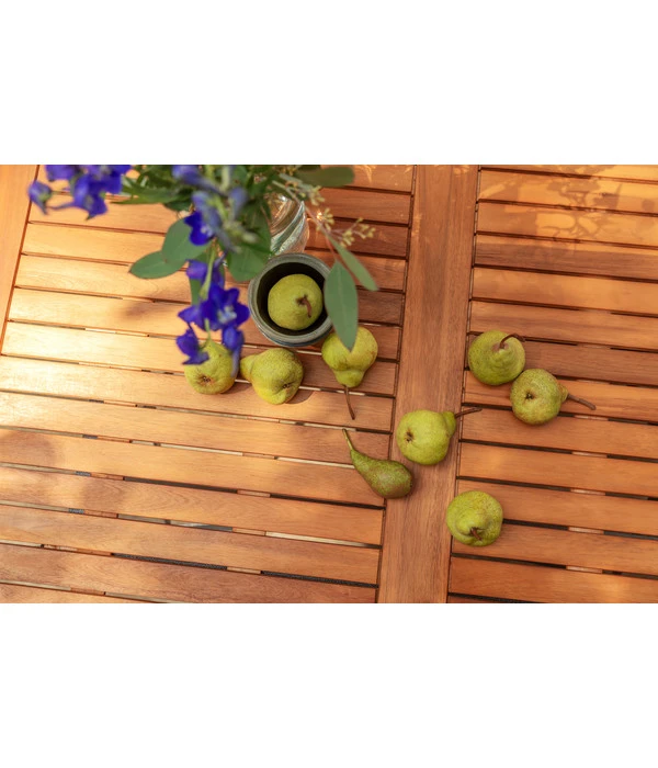 Edles Hartholz in Kombination mit robustem Stahl ist der Garant für gepflegte Gastlichkeit unter freiem Himmel. Und ein optischer Genuss für alle Ästheten. Deshalb wird der Dehner Klapptisch ‘Tegernsee‘ auch sofort die Starrolle auf Ihrem Freisitz im Garten oder auf der Terrasse übernehmen, wo er – idealerweise – zusammen mit passenden Stühlen aus der gleichnamigen Möbelgruppe der Lieblingsplatz Ihrer Familie werden wird. Aber auch Ihre Freunde werden schon beim ersten Blick auf Ihre neue Sitzgruppe erkennen, dass Sie sich etwas Besonderes geleistet haben. Denn der Dehner Klapptisch ‘Tegernsee‘ ist von Kopf bis Fuß ganz im Stil traditioneller Handwerkskunst gefertigt. Bereichern Sie Ihren Outdoor-Bereich mit dem Dehner Klapptisch ‘Tegernsee‘ und genießen Sie bald das Lob für Ihren erlesenen Geschmack!