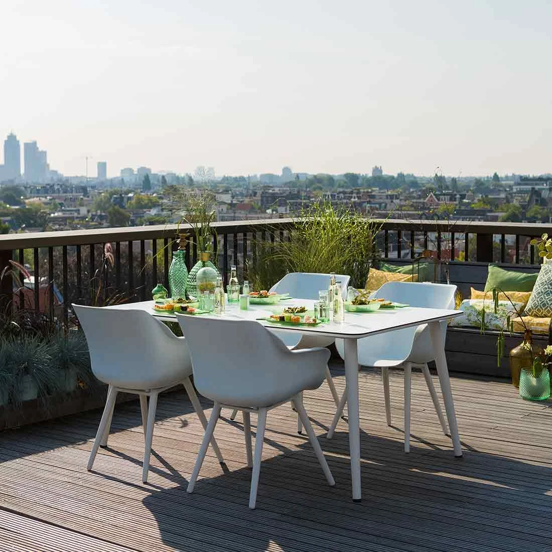 Das Gestell besteht aus pflegeleichtem und wetterfestem Aluminium in der Farbe Royal White.