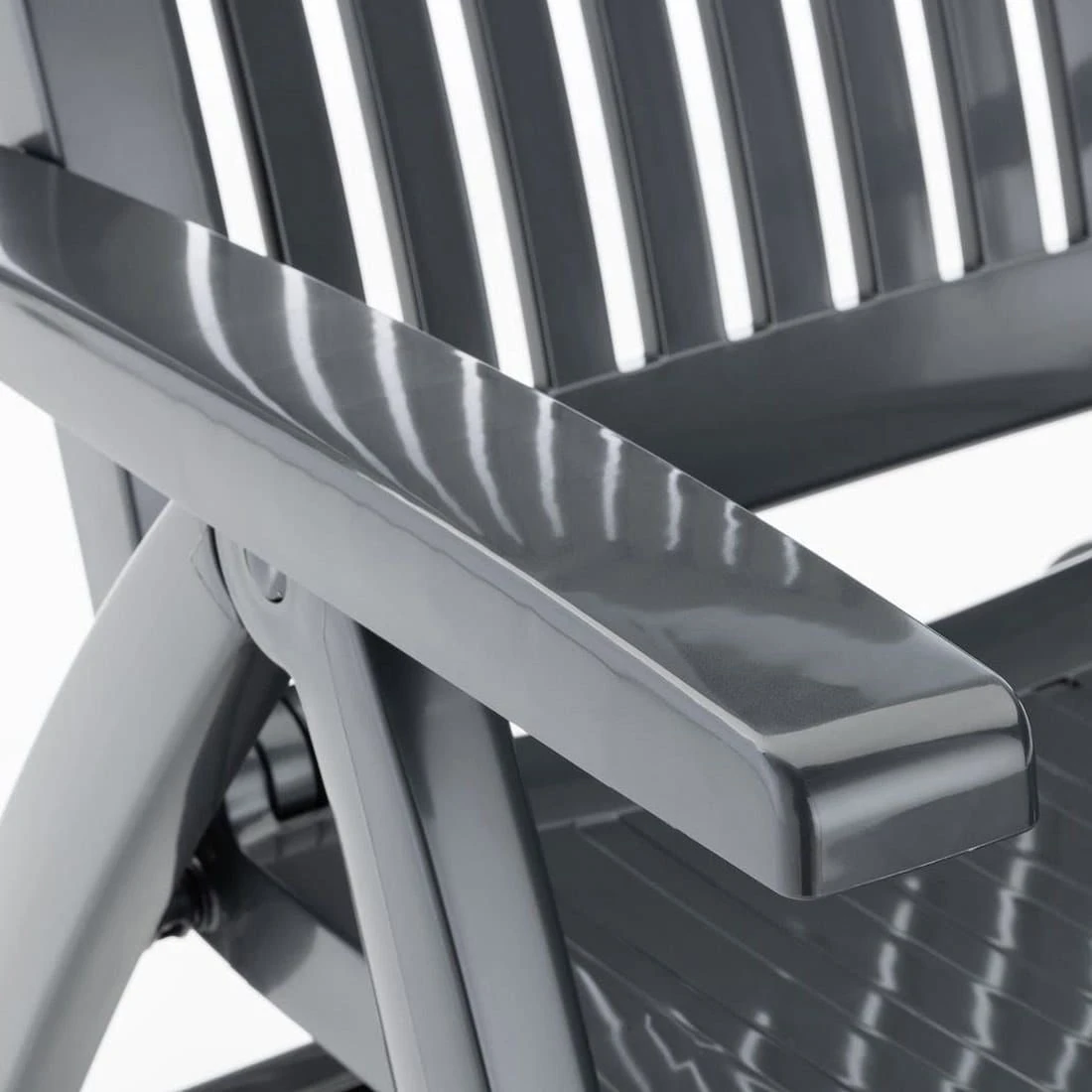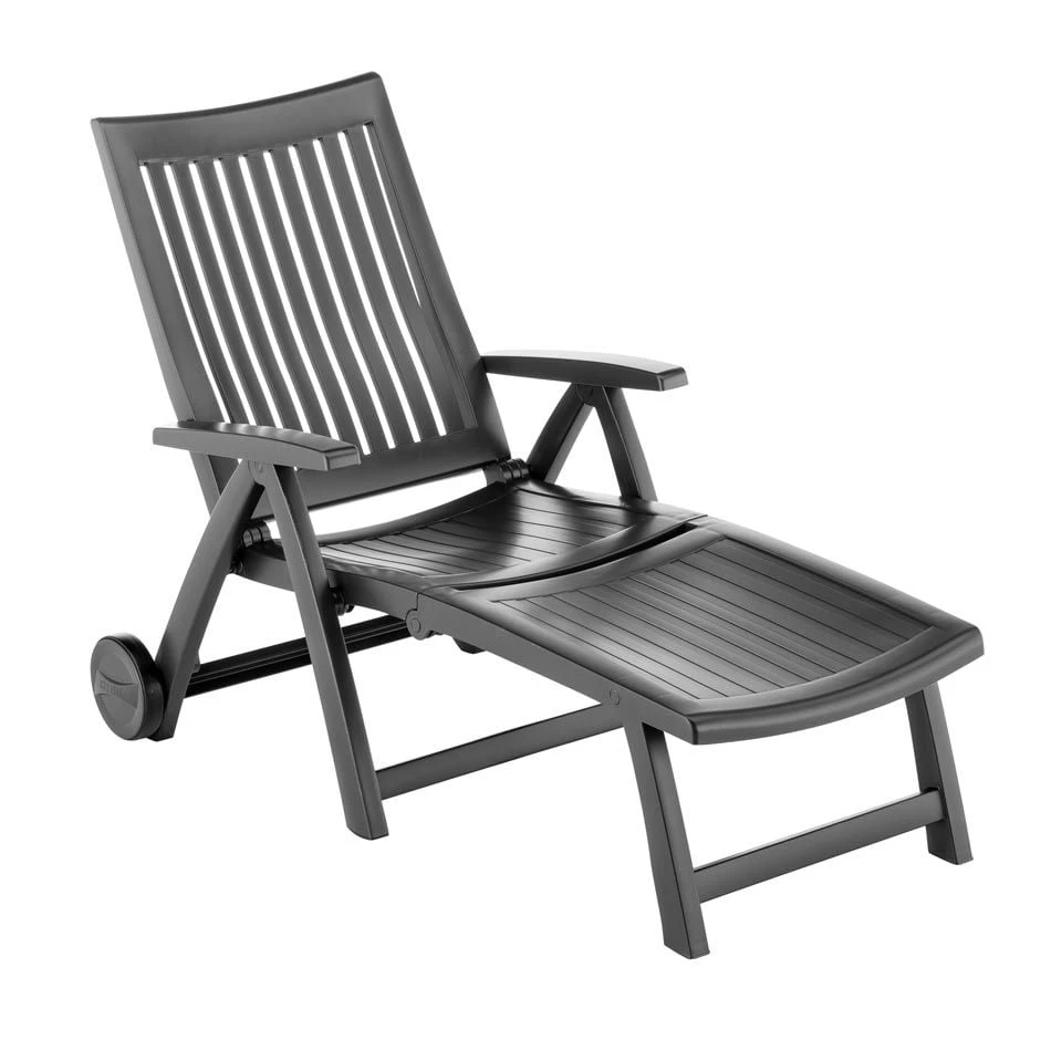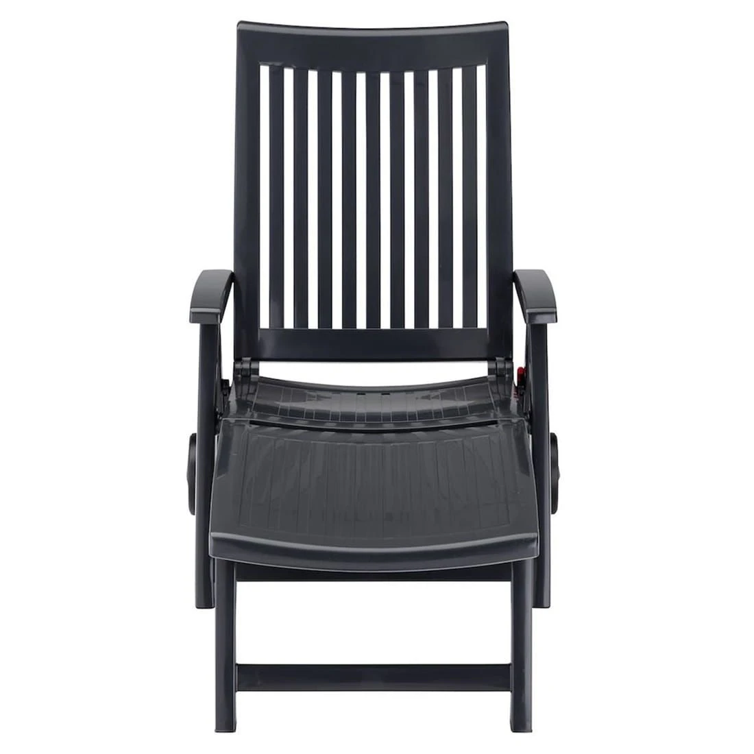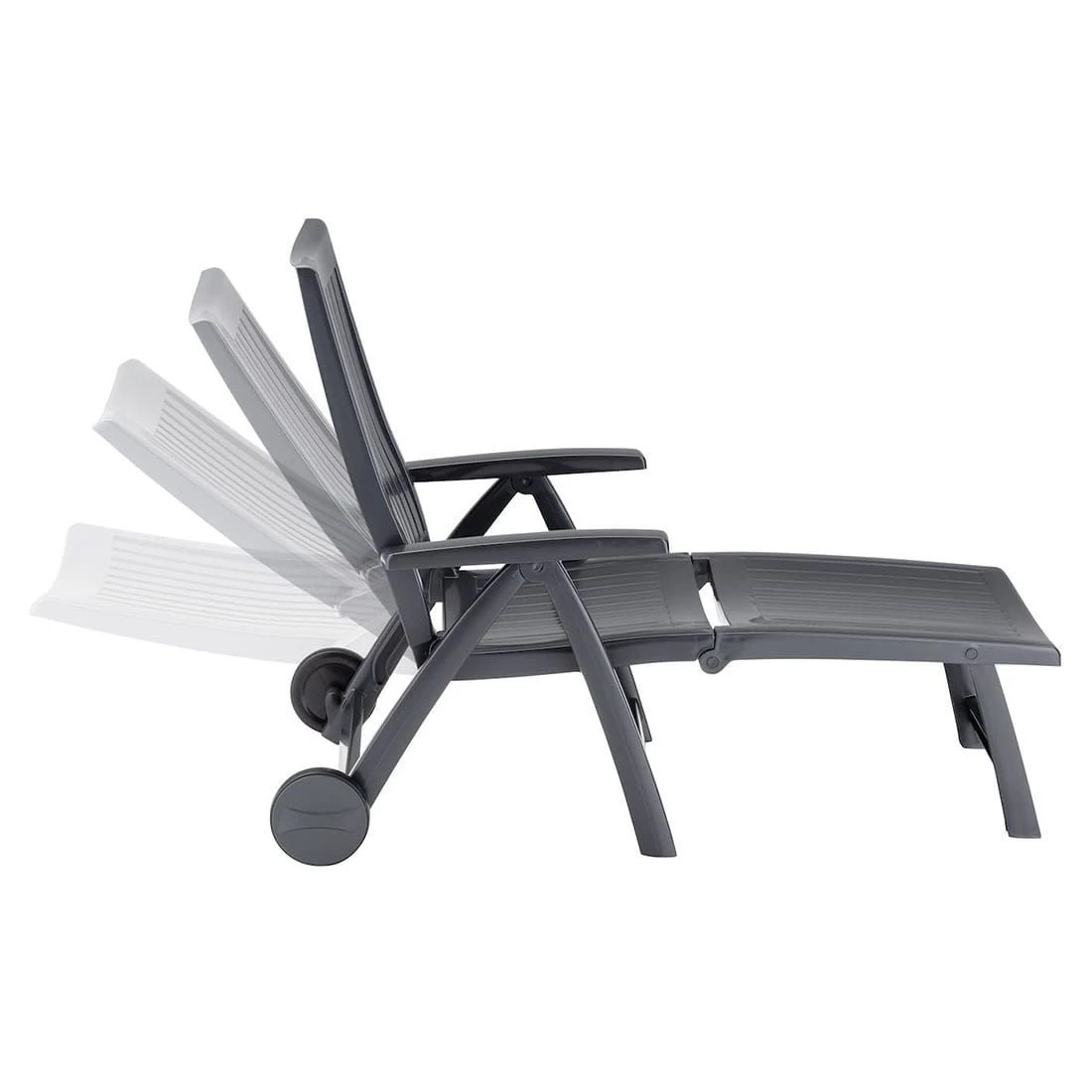 Die Gartenliege besteht vollständig aus Kunststoff. Dies erzeugt nicht nur ein geschmackvolles, sondern auch einheitliches Bild des attraktiven Möbels. Für ein perfekt stimmiges Gesamtbild sorgt die einheitliche Farbgebung in stilvollem Anthrazit.