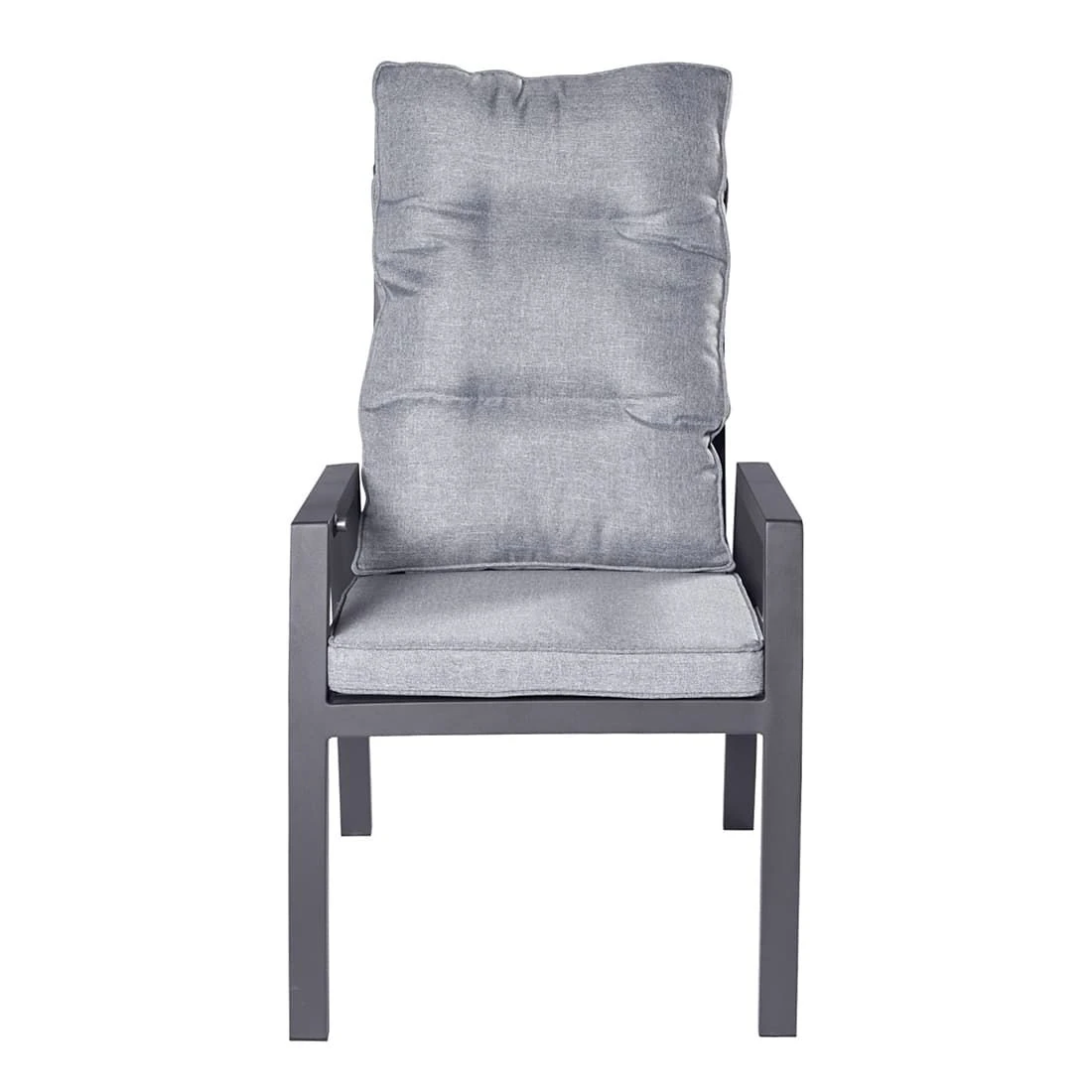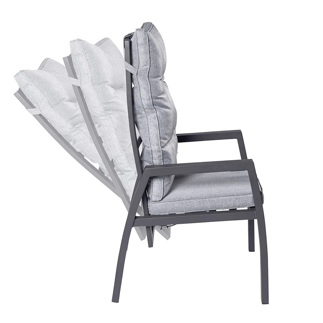 Das Gestell und die Sitzfläche sind aus Aluminium gefertigt. Als hochwertiges Material für den Bezug kommt ein Polyester-Stoff zum Einsatz. Er ist sehr strapazierfähig und bietet somit die idealen Voraussetzungen für den Einsatz im Freien. Farblich begeistert der Bezug in elegantem Grau. Damit der Gartensessel optisch ansprechend ist, sind das Gestell und die Sitzfläche im Farbton Anthrazit gehalten.