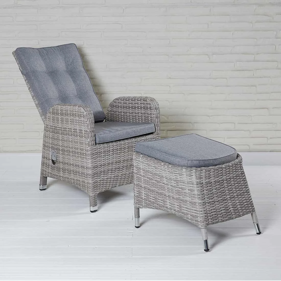 Das Gestell wird aus Aluminium in der Farbe Grau gefertigt. Das Gestell, das mit hochwertigem Polyrattan umflochten ist, bringt ein natürliches Flair auf Ihre Terrasse. Dieses Material zeichnet sich durch eine hohe Wetterbeständigkeit aus.