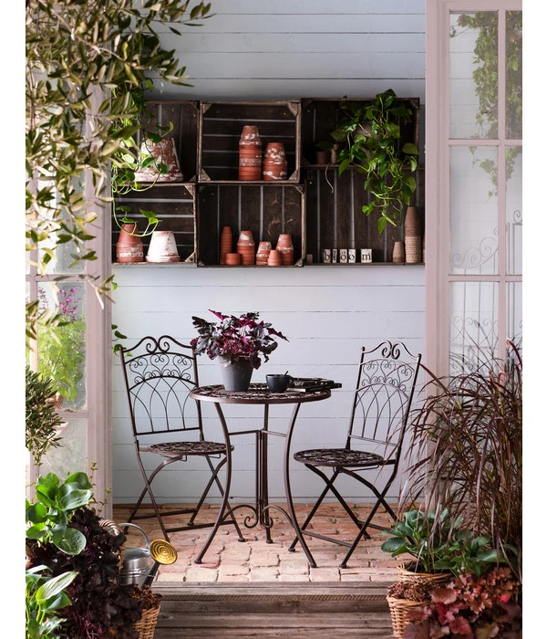 Mit seinem großzügigen Durchmesser eignet sich der Metalltisch Antik hervorragend zur Verwendung auf dem Balkon oder als mobile Tafel für ein Kaffeestündchen im Garten. Der robuste, aus Eisen gefertigte Tisch lässt Sie den Alltag vergessen und verführt Sie in ein Bistro in südlichen Gefilden. Das Material macht ihn nicht nur unempfindlich gegen Witterungseinflüsse, es sorgt zugleich für einen guten Stand. So wird der antike Tisch auch auf unebenen Böden sicher stehen. Freuen Sie sich auf einen lauen Sommerabend mit einem kühlen Softdrink oder einem Glas Rotwein am schönen Metalltisch Antik.