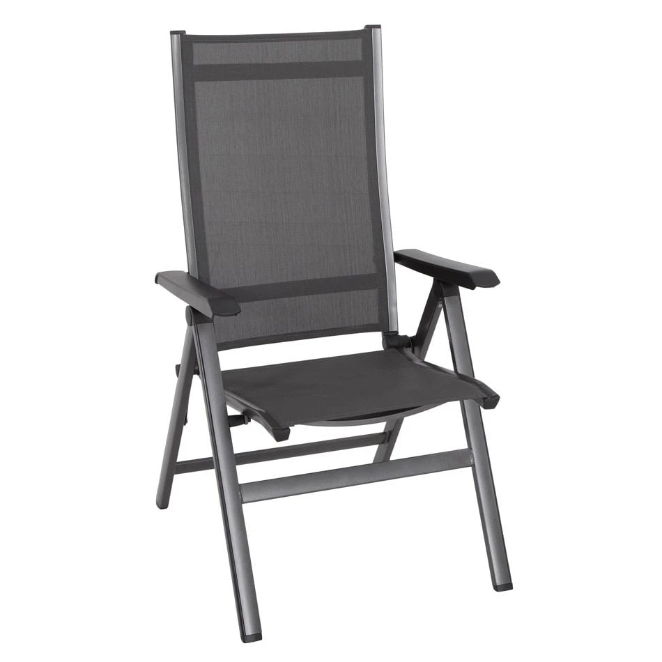 Das Gestell wird aus Aluminium gefertigt. Das geringe Eigengewicht des Materials macht den Klappsessel zu einem robusten, aber dennoch leicht zu transportierenden Sitzmöbel auf Ihrer Terrasse. Für eine attraktive Optik ist das Gestell im Farbton Eisengrau gehalten. Ein weiteres Highlight des Klappsessels ist die Bespannung mit Textilene. Dieser Bezugsstoff überzeugt durch eine hohe Robustheit gegenüber Hitze und Frost und ist leicht zu reinigen. Die Sitzfläche ist in ansprechendem Anthrazit gehalten.