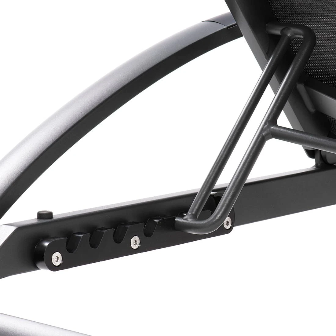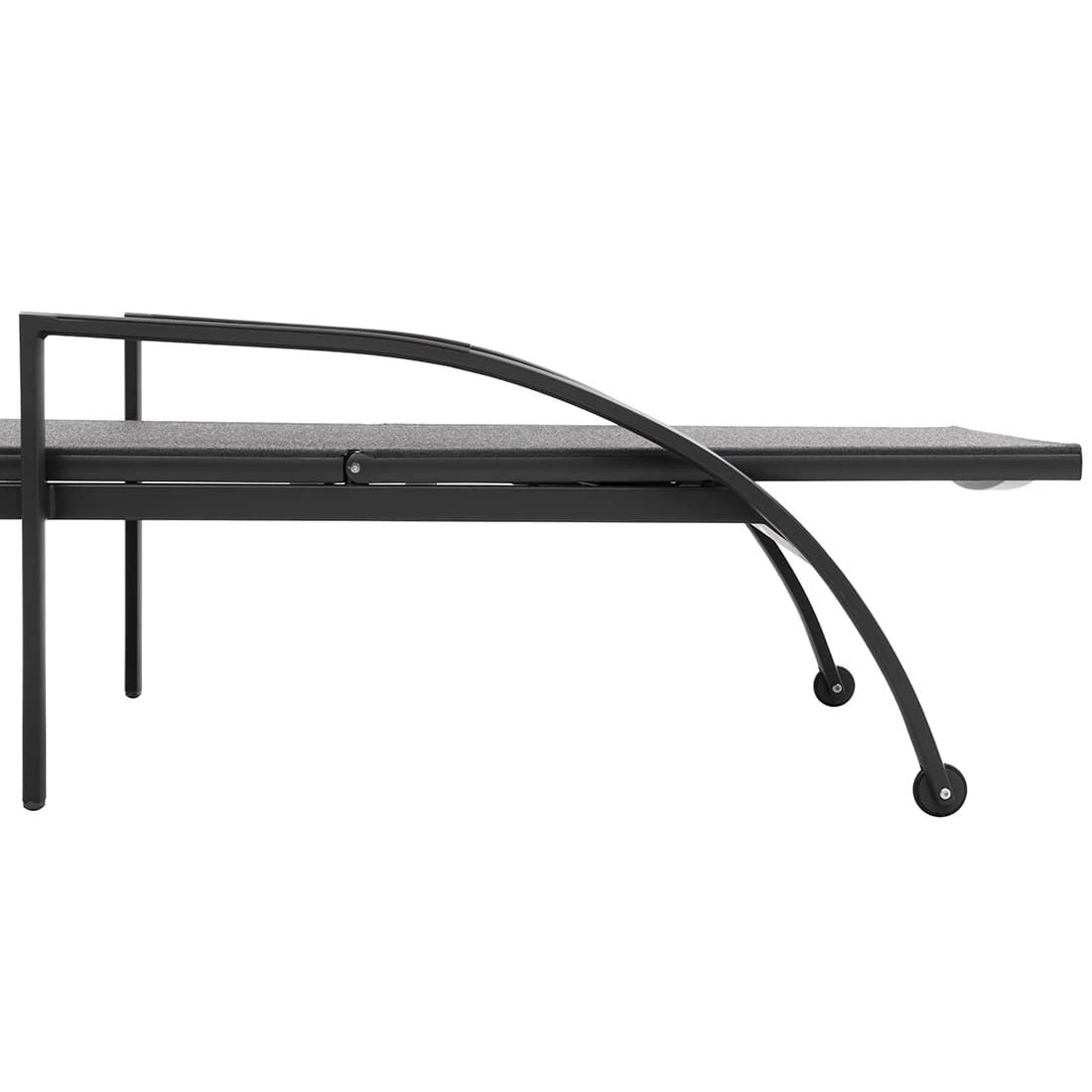 Das Kopfteil lässt sich bequem verstellen, damit Sie sich Ihre gewünschte Sitz- bzw. Liegeposition einfach aussuchen können. Im Handumdrehen den Standort der Liege wechseln? Kein Problem, denn dieses Liegenmodell ist rollbar und verfügt über praktische Räder. Auch wenn Sie mehrere Exemplare dieses Modells besitzen, können Sie diese äußerst kompakt und platzsparend aufbewahren, indem Sie diese stapeln. Damit Sie sich bequem zurücklehnen können, stellen Sie Ihre Wunschposition ganz einfach mittels Rasterschiene an der Rückenlehne ein.