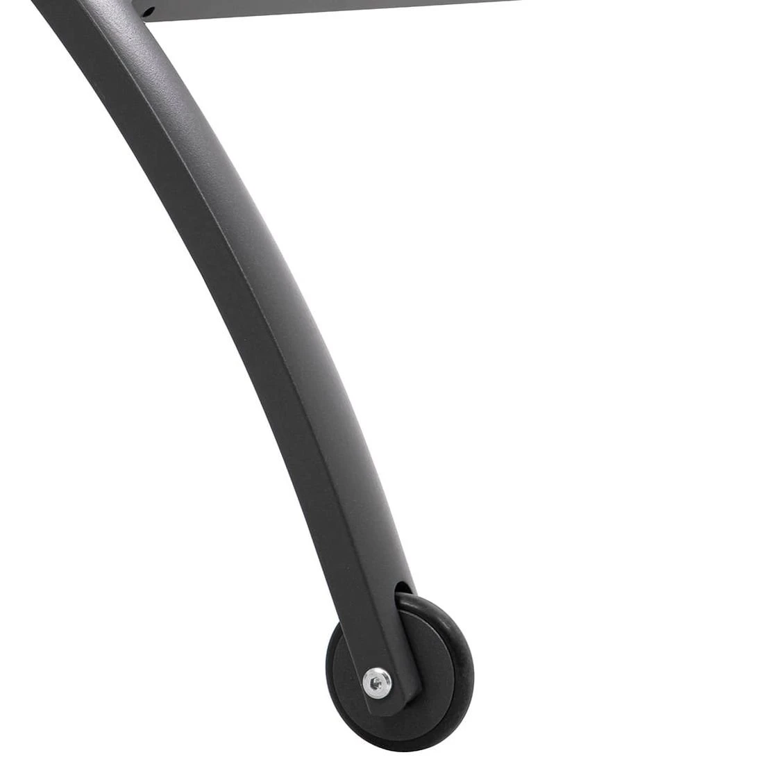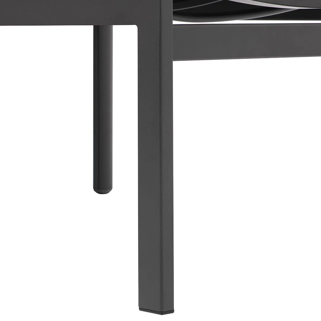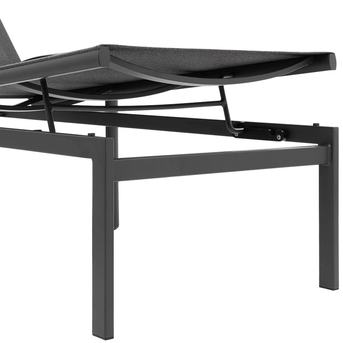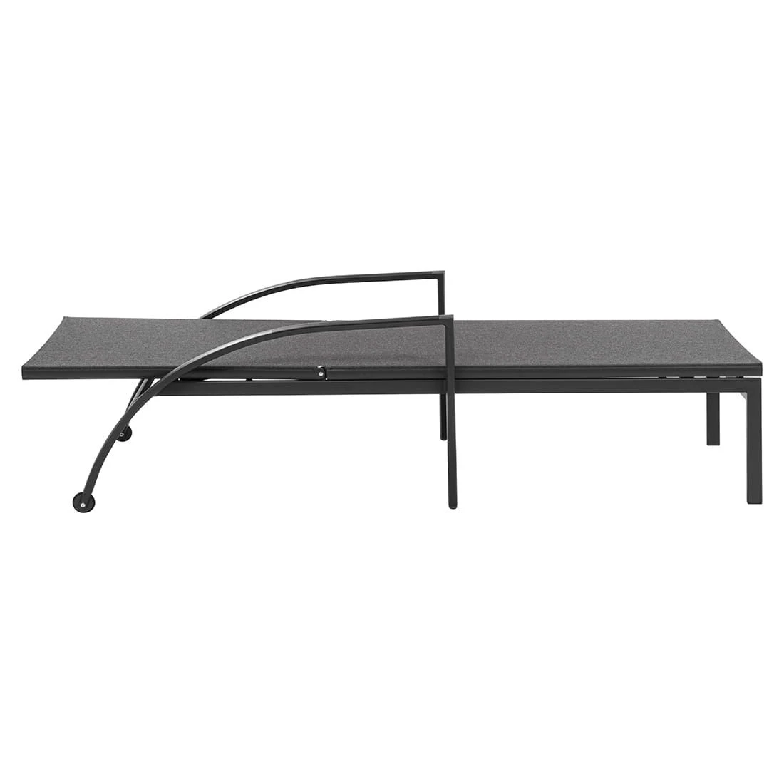 Das Gestell besteht aus pflegeleichtem und wetterfestem Aluminium. Für eine attraktive Optik ist das Gestell im Farbton Anthrazit gehalten. Die Sitzfläche wird mit Textilene bespannt. Dieses Material ist reiß- und wetterfest und zeichnet sich durch eine hohe Beständigkeit gegenüber Hitze und Frost aus. Darüber hinaus ist Textilene leicht zu säubern. Die Sitzfläche hat eine elegante Farbgebung in Coal.
