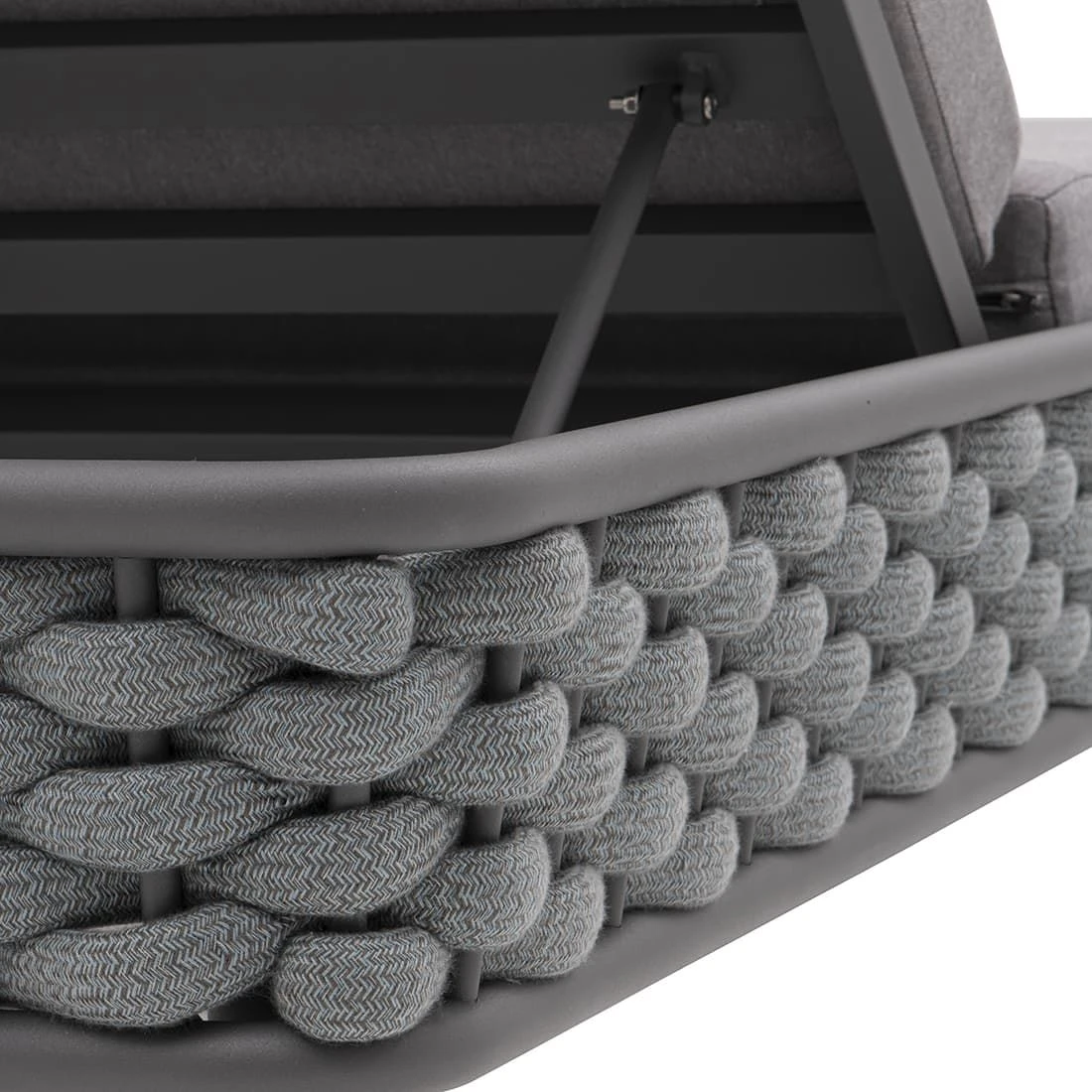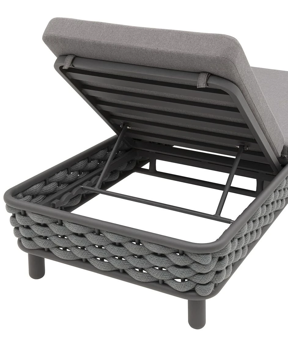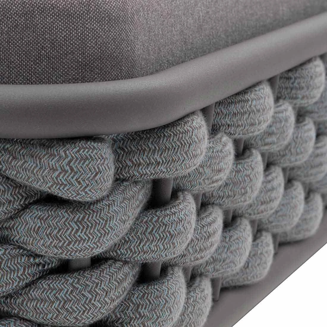 Für die Herstellung des Gestells wird hochwertiges und wetterfestes Aluminium verwendet. Das Gestell ist mit Rope umflochten und bringt somit modernen Flair auf Ihre Terrasse.