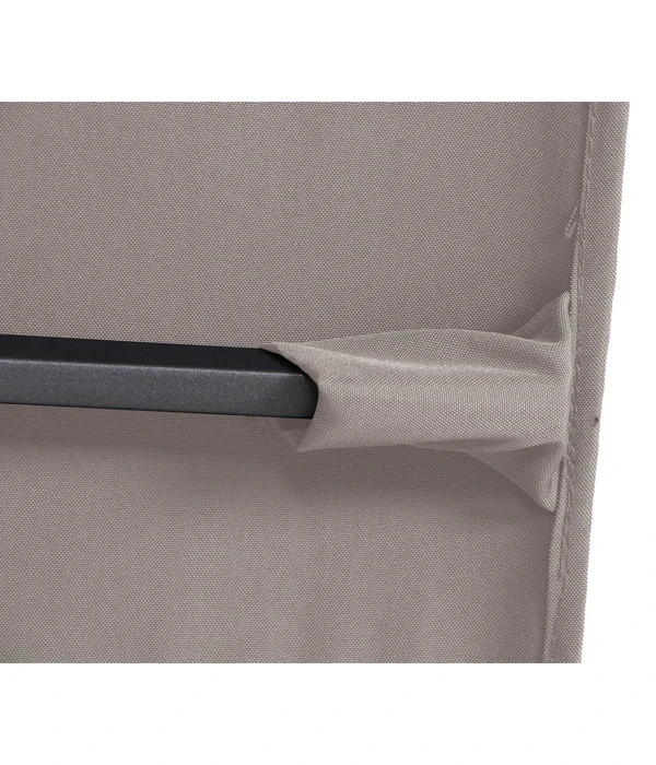 Mast und Schirmstreben bestehen beim Siena Garden Ampelschirm California N+ aus Aluminium, das dank einer Pulverbeschichtung mit bester Wetterfestigkeit punkten kann. Ergänzt wird das leichte und doch stabile Aluminium durch eine hochwertige Polyester-Qualität (240g/m²), die zusätzlich mit Polyamid beschichtet wurde, so dass Regen nicht gleich durchdringen kann und Sie einen kleinen Schauer entspannt unter dem Sonnenschirm abwarten können. Die Stofftaschen für die Streben sind an den Enden extra verstärkt und das Stahlkreuz zum Beschweren mit Wegeplatten (nicht dabei) sind im Lieferumfang inbegriffen.