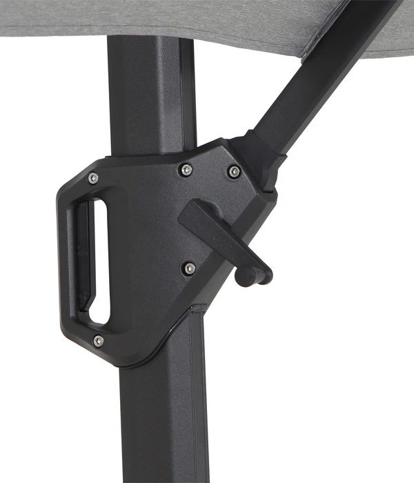 Der Siena Garden Ampelschirm Cirrus lässt sich natürlich auch ganz bequem öffnen und schließen. Alles, was Sie dafür tun müssen, ist das Betätigen der praktischen Kurbel. Ihr neuer Sonnenschutz überzeugt außerdem mit einem enorm soliden Gestell aus pulverbeschichtetem Aluminium und einer äußerst robusten Bespannung aus hochwertigem Polyestergewebe mit 240 g/m² Stoffstärke. Darüber hinaus ist die hochwertige Verarbeitung an jedem Detail zu erkennen – von der Strebe bis zur Schraubverbindung.