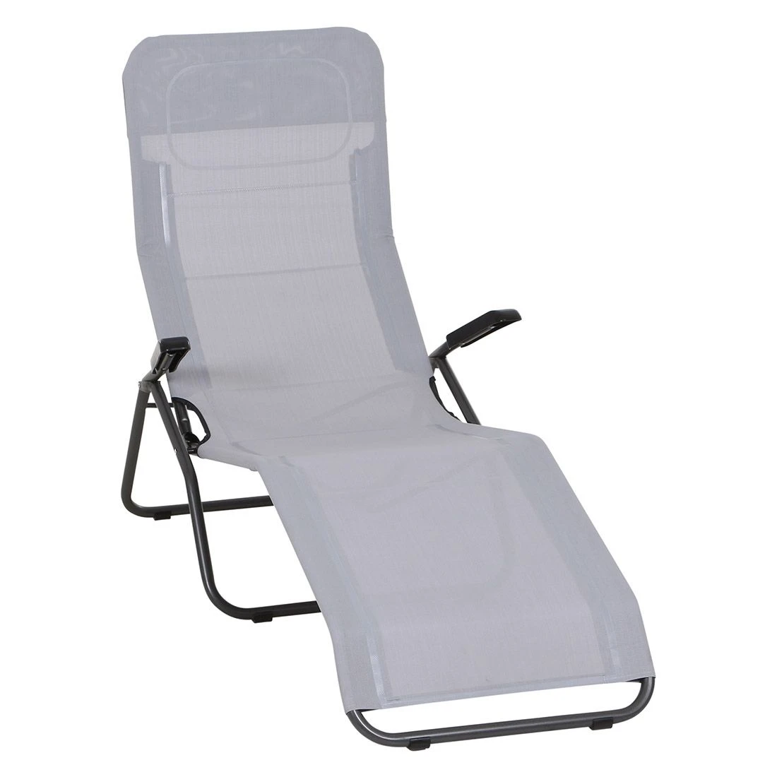 Das Gestell wird aus Stahl (Farbe: Anthrazit) gefertigt und sorgt damit für stabilen Halt beim Sitzen. Die Sitzfläche wird mit Textilene in der Farbe Hellgrau bespannt. Dieses Material ist reiß- und wetterfest und zeichnet sich durch eine hohe Beständigkeit gegenüber Hitze und Frost aus. Darüber hinaus ist Textilene leicht zu säubern.