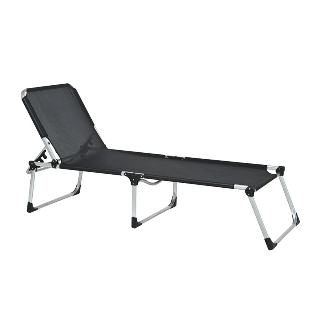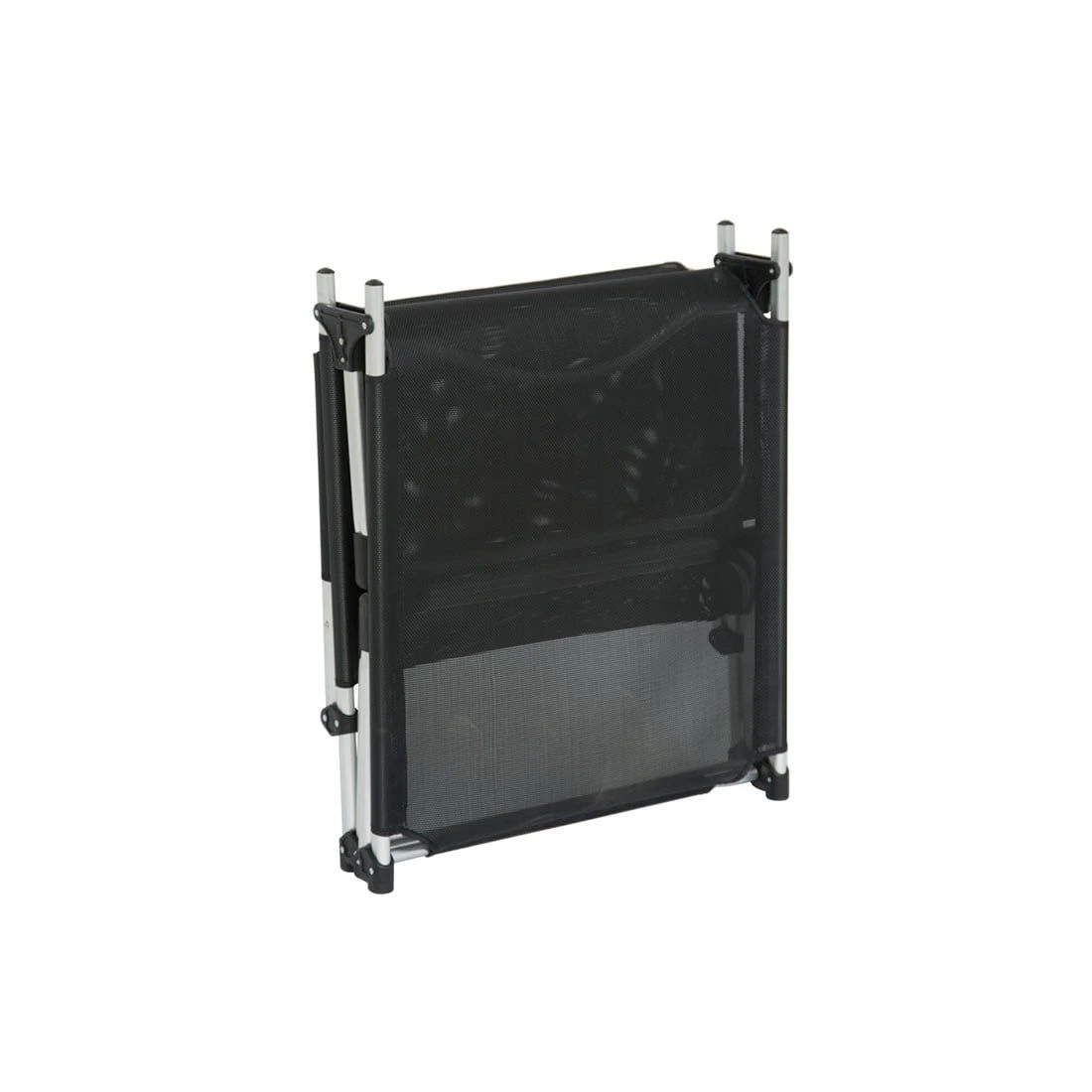 Das Gestell besteht aus pflegeleichtem und wetterfestem Aluminium in der Farbe Silber. Für die Bespannung der Sitzfläche wird hochwertiges Ranotex-Gewebe in der Farbe Schwarz verwendet. Es besteht aus PVC-ummantelten Polyesterfasern und zeichnet sich durch eine hohe UV-Beständigkeit und Luftdurchlässigkeit aus. Dadurch trocknet das Material sehr zügig. Aufgrund der weichen Liegefläche ist eine zusätzliche Polsterauflage bei diesem Modell nicht mehr nötig.