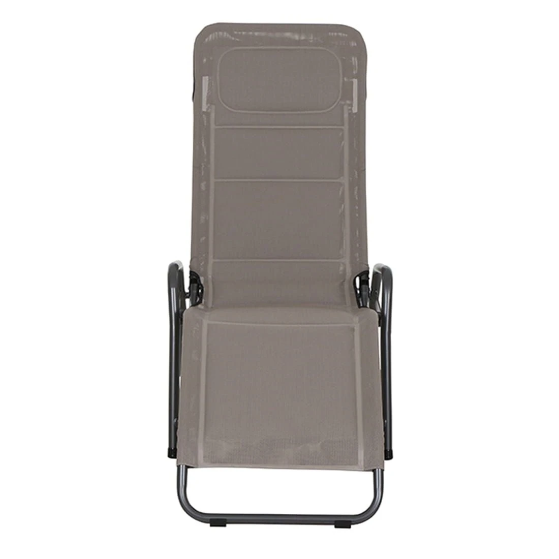 Das Gestell wird aus robustem Stahl in der Farbe Anthrazit gefertigt. Die Sitzfläche wird mit Textilene in der Farbe Taupe bespannt. Dieses Material ist reiß- und wetterfest und zeichnet sich durch eine hohe Beständigkeit gegenüber Hitze und Frost aus. Darüber hinaus ist Textilene leicht zu säubern. Dieses Modell ist so bequem, dass Sie keine zusätzliche Polsterauflage benötigen.