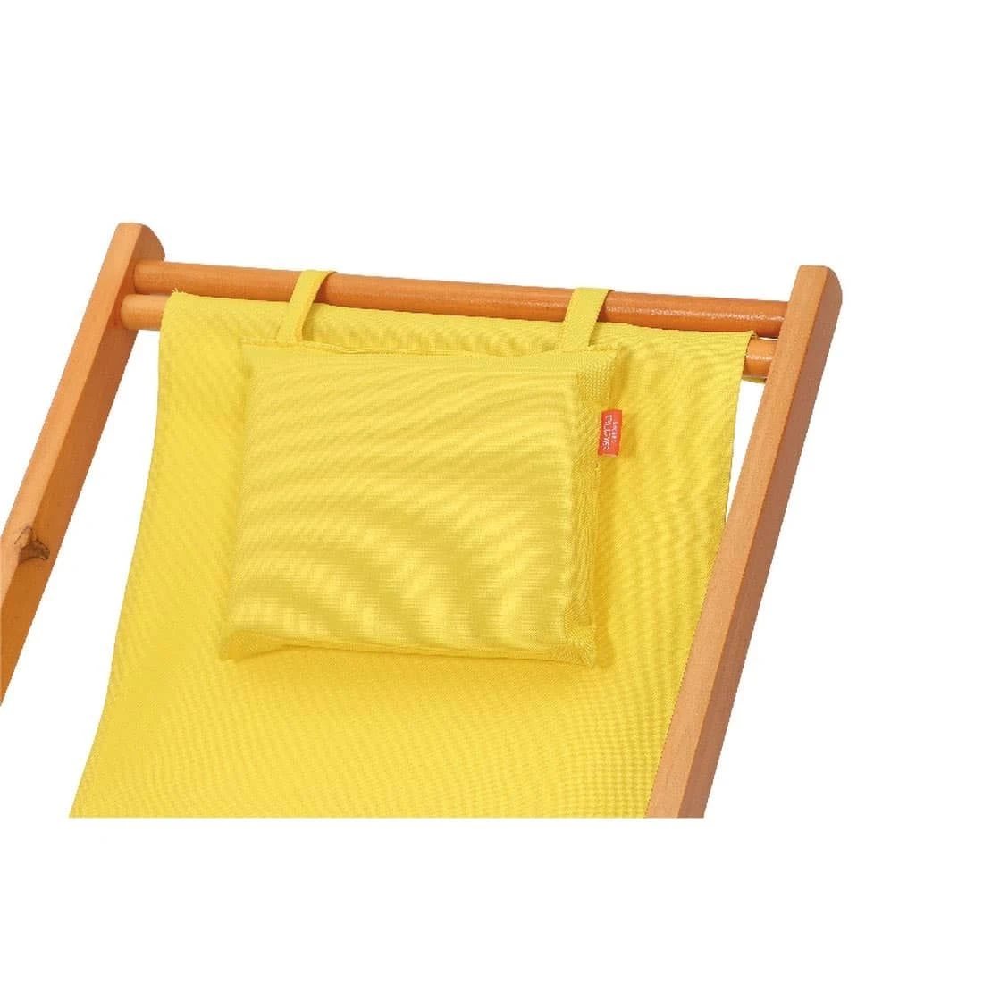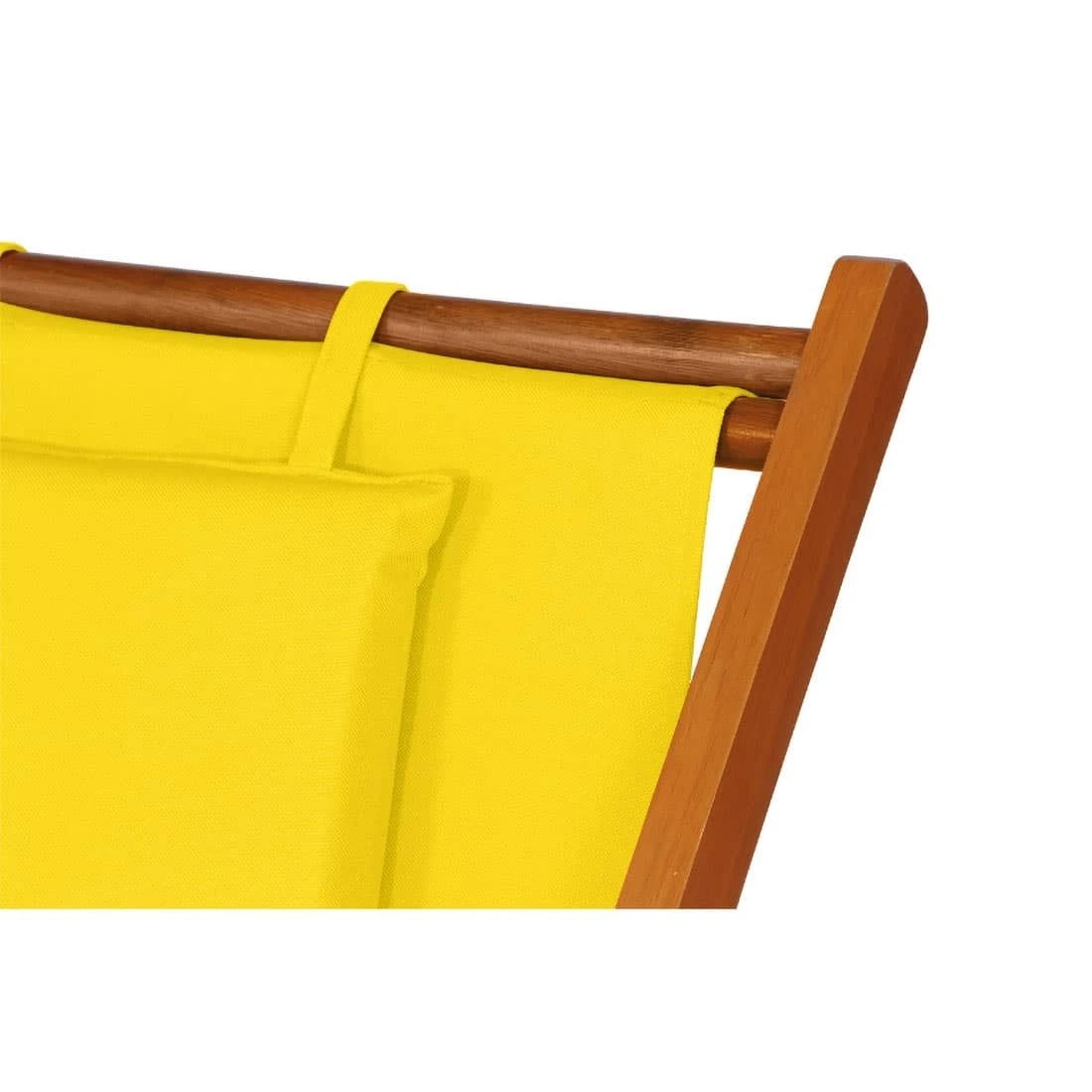 Das Gestell ist aus langlebigem Holz gefertigt. Für eine attraktive Optik ist das Gestell im Farbton Braun gehalten. Die Sitzfläche des Liegestuhls wird mit Polyester bespannt. Die Sitzfläche hat eine schöne Farbgebung in Gelb.