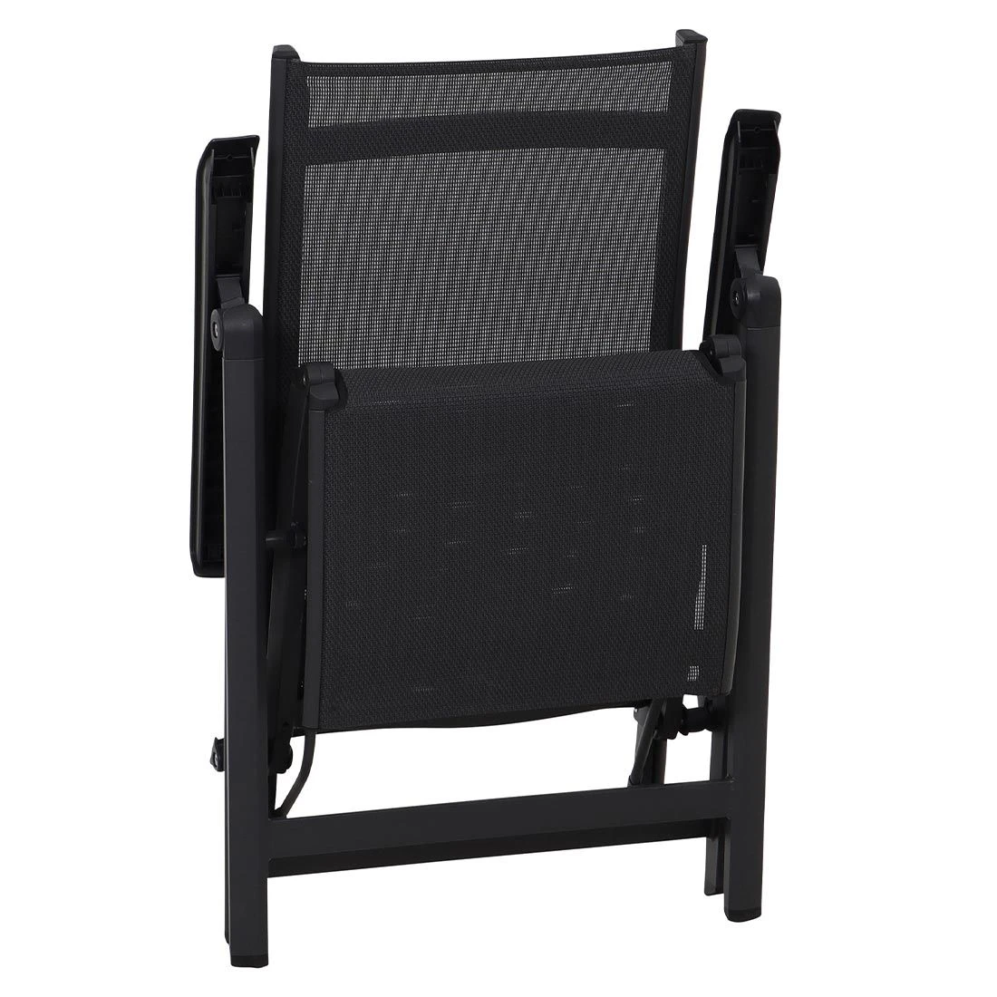 Für die Bespannung der Sitzfläche wird hochwertiges Ranotex-Gewebe in der Farbe Silber-Schwarz verwendet. Es besteht aus PVC-ummantelten Polyesterfasern und zeichnet sich durch eine hohe UV-Beständigkeit und Luftdurchlässigkeit aus. Dadurch trocknet das Material sehr zügig.