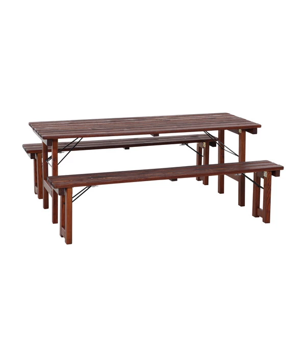 Mit einer Sitzgarnitur Wallis können Sie auĂerdem angenehm flexibel bleiben. Denn Tisch wie BĂ€nke lassen sich absolut platzsparend zusammenklappen und auf diese Weise mit wenigen Handgriffen beiseite rĂ€umen, wenn Sie den Platz auf der Terrasse gerade anderweitig benötigen. Gleiches gilt, wenn Sie die Möbel den Winter ĂŒber im GartenhĂ€uschen unterstellen wollen. Und es macht auch einen Ortswechsel ganz einfach.
