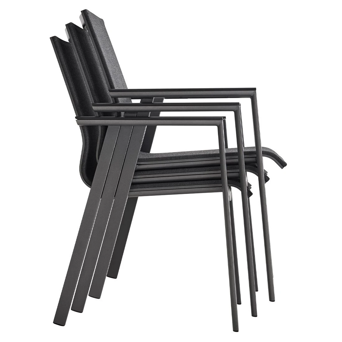 Für die Herstellung des Gestells wird hochwertiges und wetterfestes Aluminium verwendet. Für eine attraktive Optik ist das Gestell im Farbton Anthrazit gehalten. Ein weiteres Highlight des Stapelsessels ist die Bespannung mit Textilene. Dieser Bezugsstoff überzeugt durch eine hohe Robustheit gegenüber Hitze und Frost und ist leicht zu reinigen. Die Sitzfläche hat eine attraktive Farbgebung in Coal.