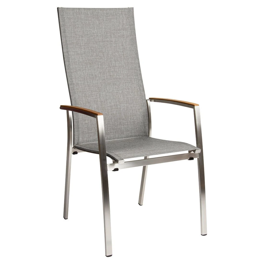 Für die Bespannung der Sitzfläche verlässt sich der Hersteller auf hochwertiges Textilene. Es zeichnet sich durch eine hohe Robustheit gegenüber Hitze und Frost aus und ist leicht zu reinigen. Unser Tipp: Wenn Sie mehrere Exemplare des Modells Mika besitzen, können Sie diese äußerst kompakt und platzsparend aufbewahren, indem Sie diese stapeln. Die Sitzbreite von 45 cm und die Sitztiefe von 45 cm machen den Stapelsessel besonders komfortabel. Die Sitzhöhe liegt zudem bei angenehmen 45 cm.