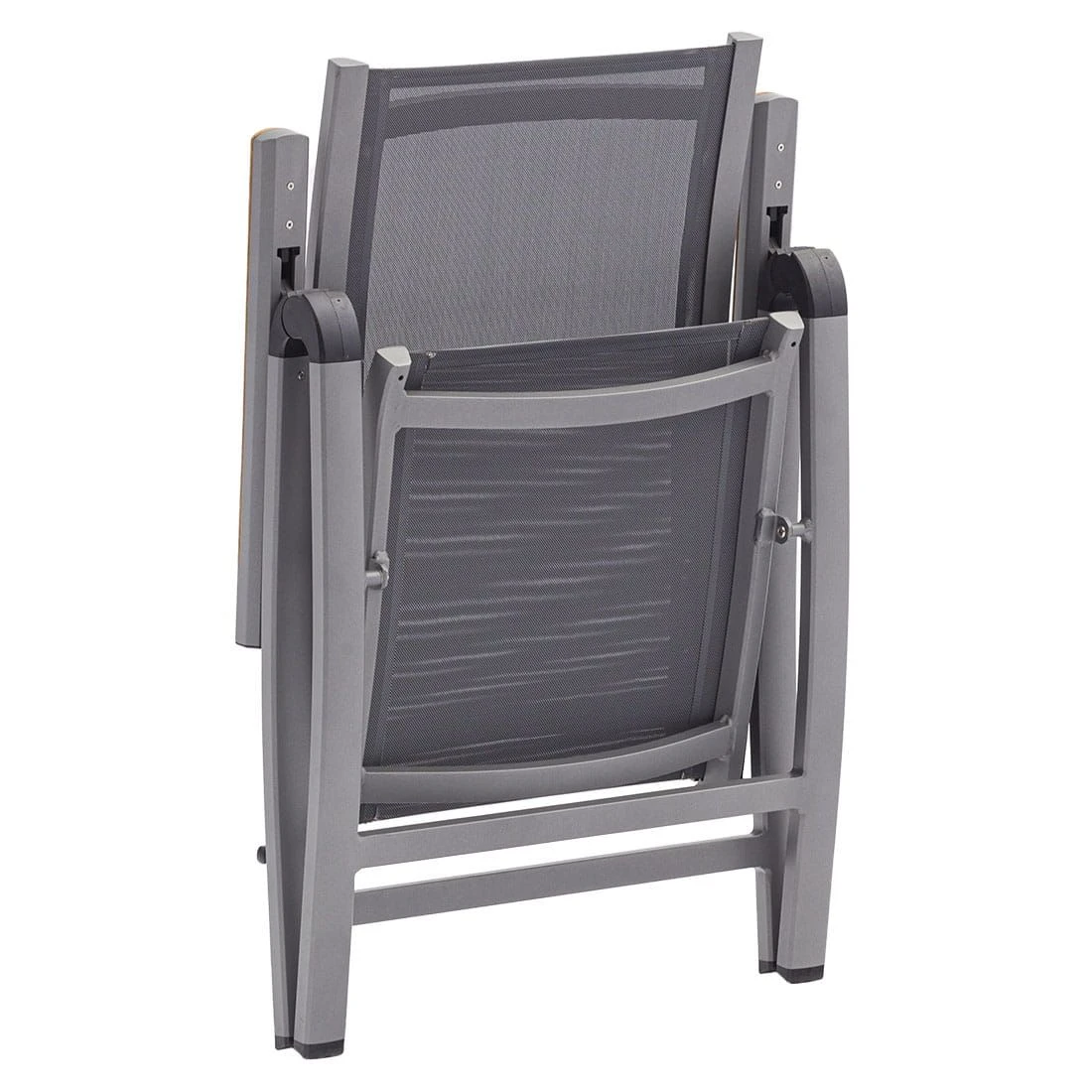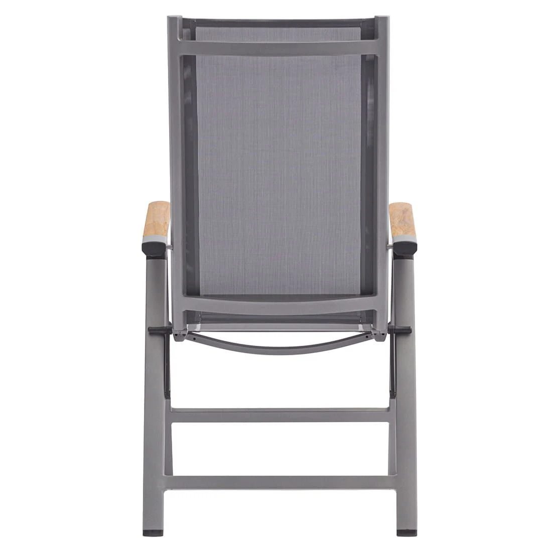 Das Gestell wird aus Aluminium in der Farbe Elegance Grey gefertigt. Das geringe Eigengewicht des Materials macht den Klappsessel zu einem robusten, aber dennoch leicht zu transportierenden Sitzmöbel auf Ihrer Terrasse.