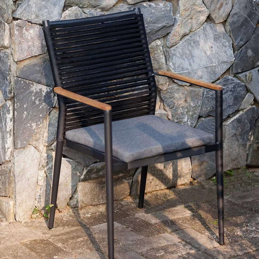 Ein weiteres Highlight des Stapelsessels ist die Bespannung mit Textilene in der Farbe Dark Grey. Dieser Bezugsstoff überzeugt durch eine hohe Robustheit gegenüber Hitze und Frost aus und ist leicht zu reinigen. Unser Tipp: Wenn Sie mehrere Exemplare des Modells Spider besitzen, können Sie diese äußerst kompakt und platzsparend aufbewahren, indem Sie diese stapeln. Dank der Verwendung von hochwertigen Materialien ist der Stapelsessel überaus robust und hält einer Belastung von 100 kg hervorragend stand. Angenehm ist auch die Sitzhöhe, welche bei 46 cm liegt.