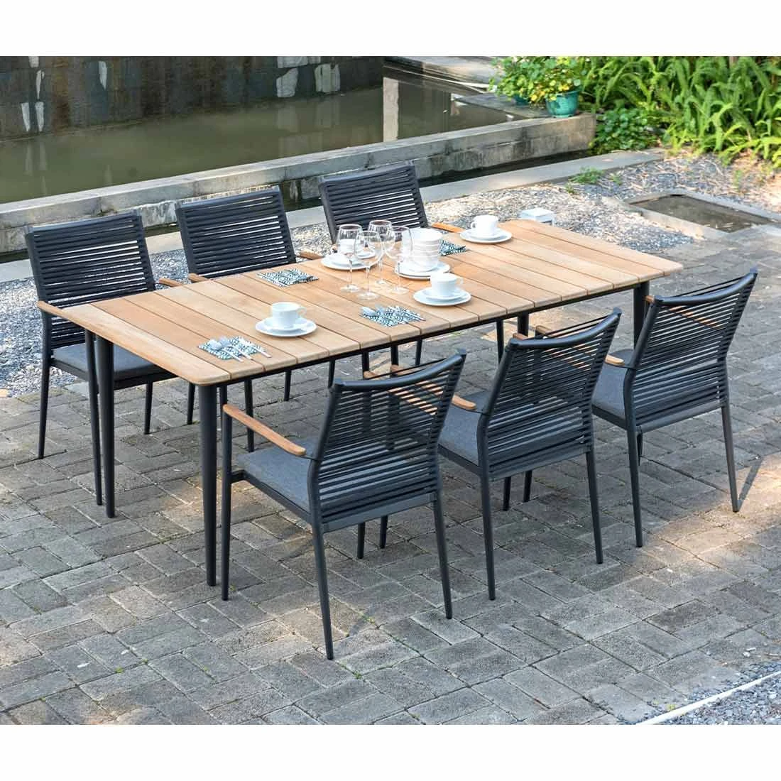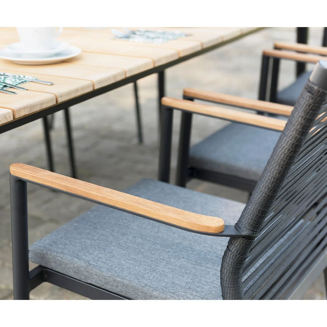 Das Gestell besteht aus pflegeleichtem und wetterfestem Aluminium in der Farbe Graphit.