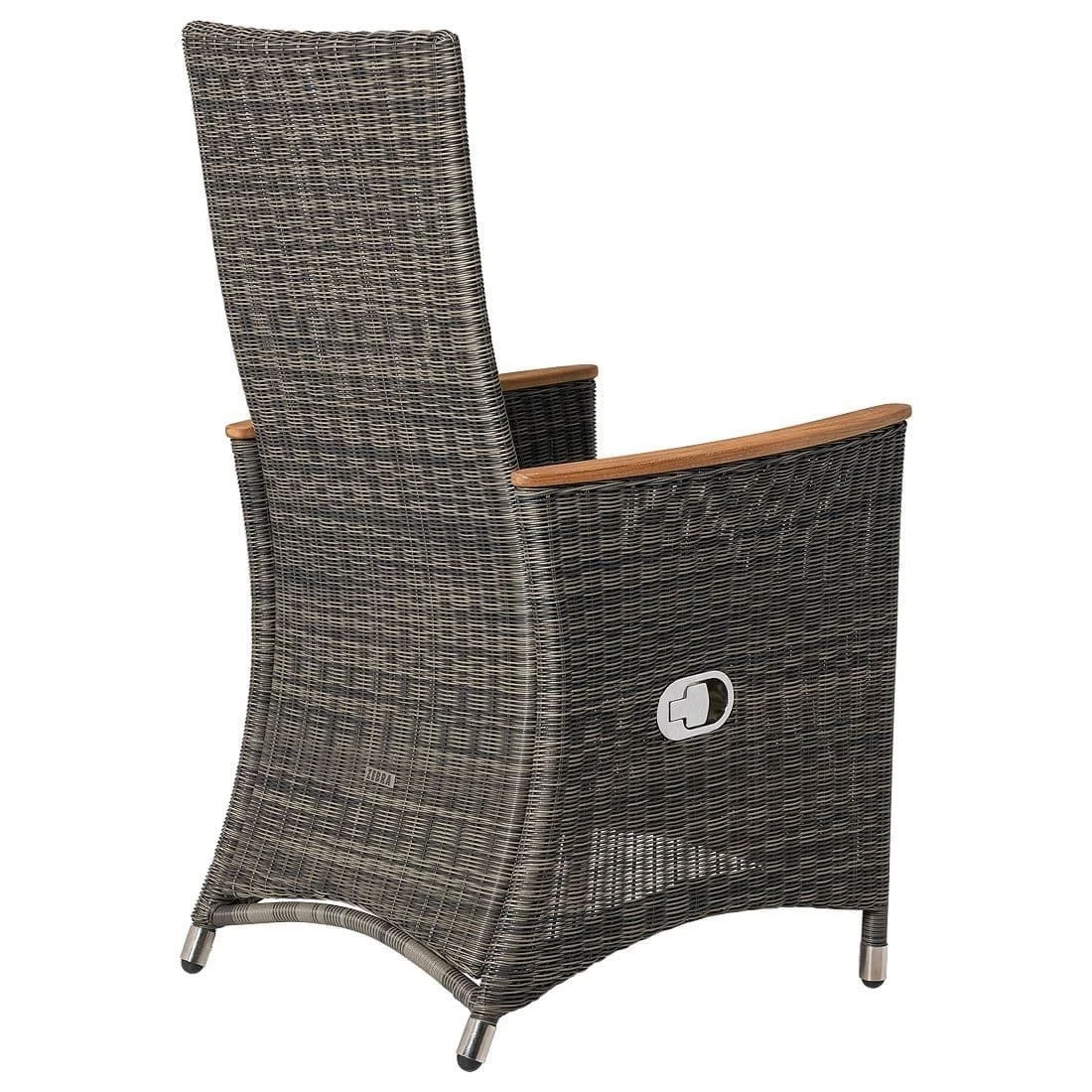 Der Korpus und die Sitzfläche bestehen aus Polyrattan-Geflecht. Für die Herstellung des Gestells wird hochwertiges und wetterfestes Aluminium verwendet. Für ein perfekt stimmiges Gesamtbild sorgt die einheitliche Farbgebung in stilvollem Grey-Black.